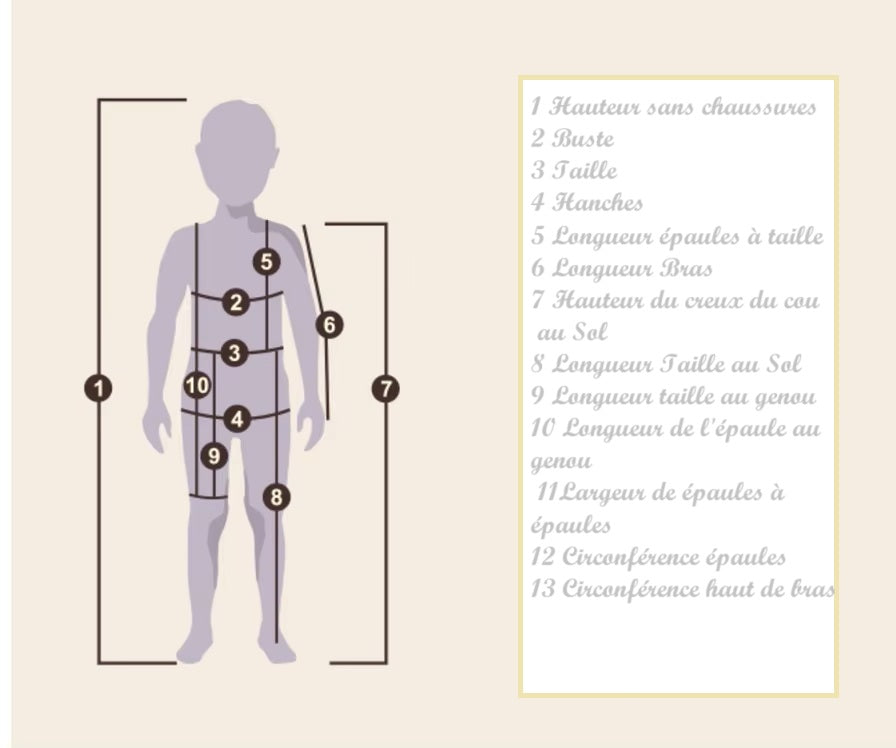 ** Guide recommandé de tailles - Prendre toutes les mesures de votre enfant avant commande