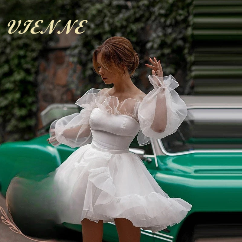 Un modèle empreint de sensualité pour les cérémonies civiles, en petit comité ou l'option d'une seconde robe en soirée. VIENNE, est une robe de mariée, réalisée en organza et de polyester et déclinée en ton ivoire (blanc cassé).