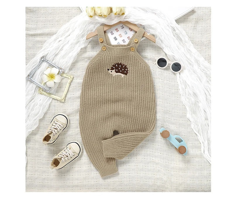 Cette adorable salopette confectionnée dans une maille à la fois douce et chaude, réalisée dans un point mousse, déclinée dans une teinte chaude automnale de ton marron et agrémentée de tendres motifs sur le devant. Elle offre à la fois confort et style et garde votre bébé au chaud tout en lui permettant de bouger librement. Pensée pour accompagner les premiers mois de bébé, retenue par des bretelles, elle s'attache sur le devant pour un habillage facile et sécurisé.