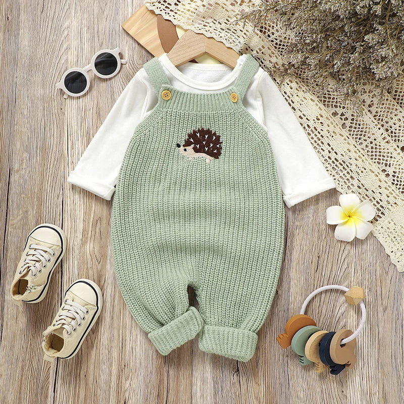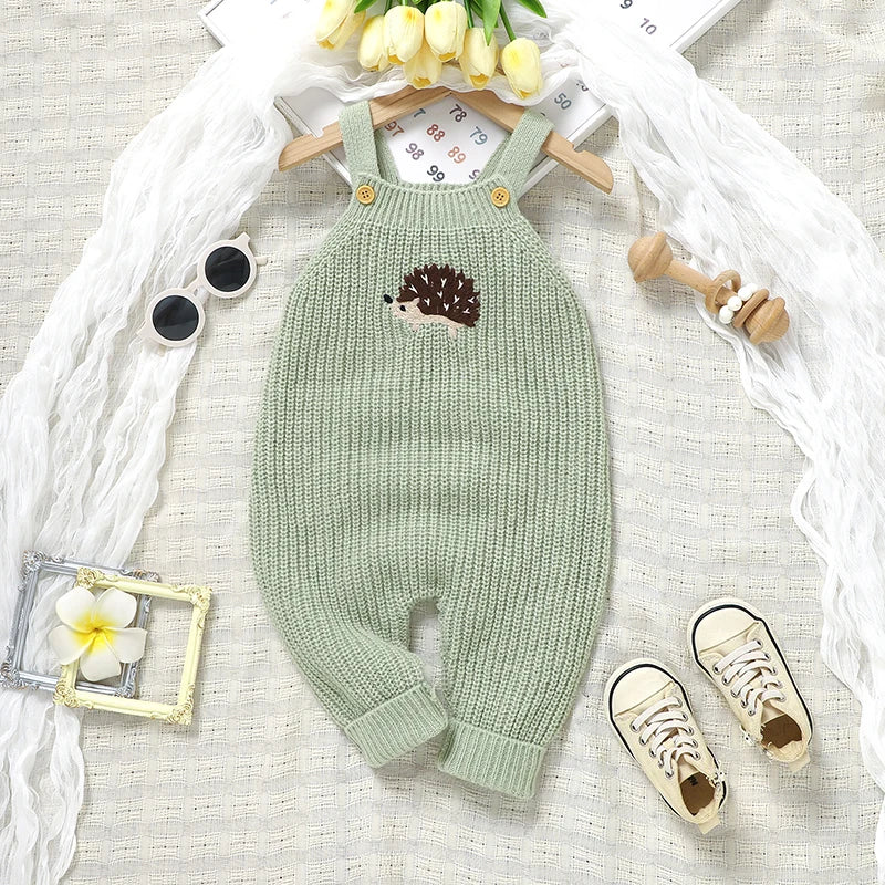 Cette adorable salopette confectionnée dans une maille à la fois douce et chaude, réalisée dans un point mousse, déclinée dans une teinte chaude automnale de ton vert et agrémentée de tendres motifs sur le devant. Elle offre à la fois confort et style et garde votre bébé au chaud tout en lui permettant de bouger librement. Pensée pour accompagner les premiers mois de bébé, retenue par des bretelles, elle s'attache sur le devant pour un habillage facile et sécurisé.