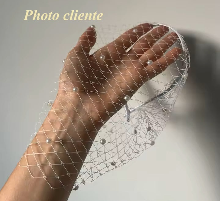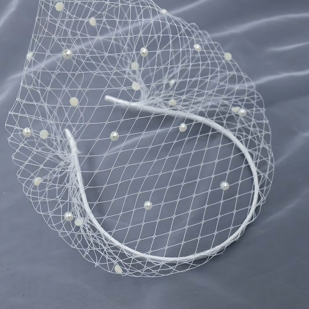 Doté d'un design élégant dans un style "filet de poisson" cette voilette ornée de petites perles, se porte idéalement comme un serre-tête. Réalisée à la main sur une base souple pour un ajustement parfait et une aisance inégalée, offrant une allure très élégante et moderne.